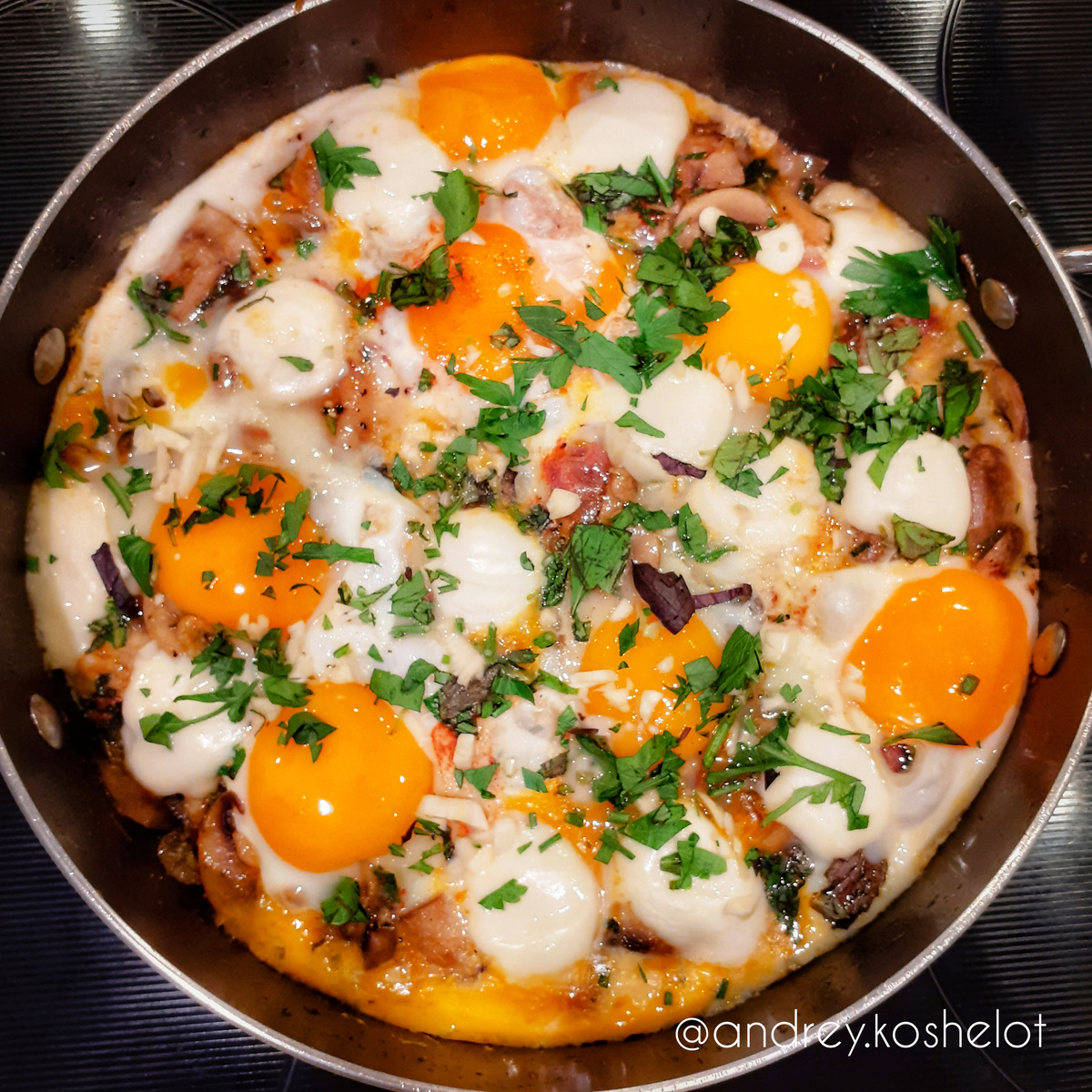 Частенько балую по выходным на завтрак свою семью такой яичницей и они всегда ее ждут!