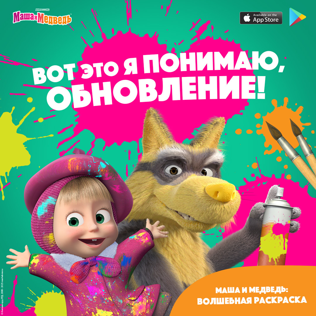В нём вы найдёте классные сюжеты о Маше и её друзьях в 2D и 3D картинках для раскрашивания, а также интересные мини-игры, которые увлекут вас с головой! Приложение можно поставить и на смартфон, и на планшеты. Интересно для детей и взрослых, и даже бабушек можно увлечь — да-да, попробуйте! 😁 Реклама. ООО «Маша и Медведь». ИНН 7717673901 erid: 2W5zFHkqQjJ
