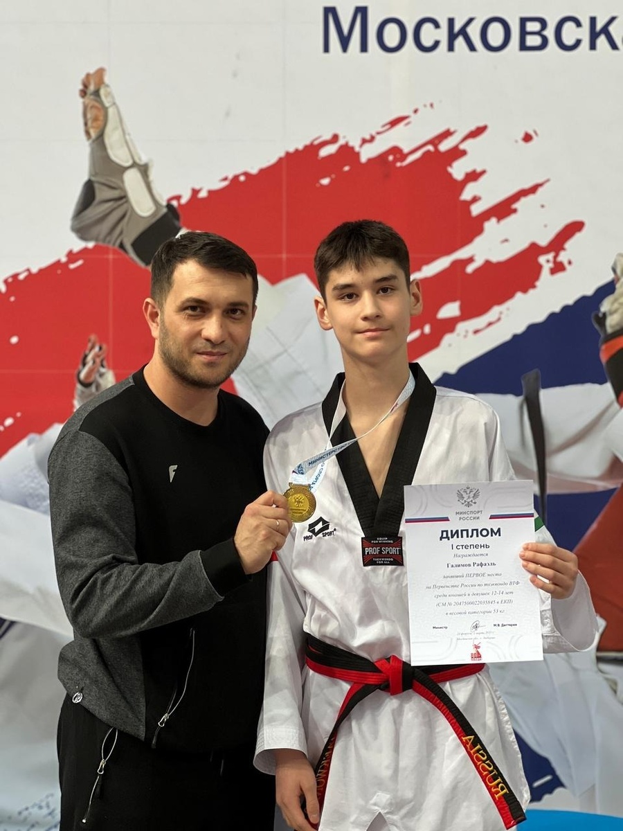 Рафаэль Галимов из Уфы стал чемпионом России по тхэквондо ВТФ. О победе юного тхэквондиста сообщили в министерстве спорта республики. Рафаэль завоевал золотую медаль в весовой категории до 53 кг. Он тренируется под руководством Искандера Рахматова в уфимском клубе тхэквондо «Искра». Еще одну награду соревнований — бронзовую медаль получил Артем Звягинцев в весовой категории до 45 кг (тренер — Александр Козьмин). Первенство России по тхэквондо ВТФ прошло в подмосковных Люберцах. Участниками турнира стали 788 спортсменов из 60 регионов страны. Ранее спортсмены из Башкирии завоевали бронзовые медали на соревнованиях в Италии.