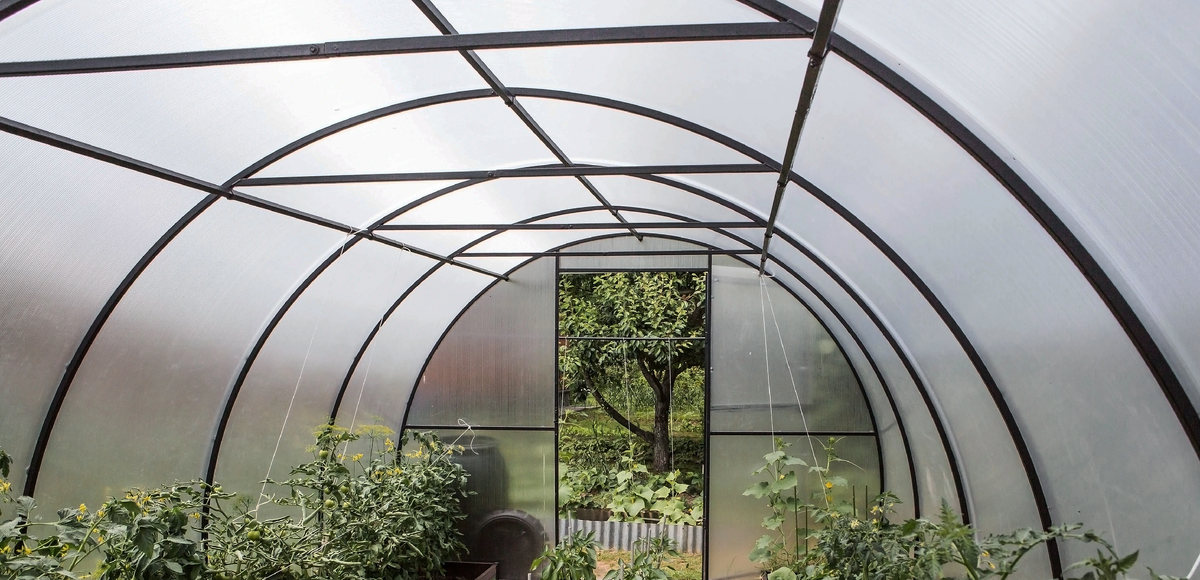 Сам поликарбонат не может держать нагрузки — их держит каркас. Прочность теплицы зависит именно от него, поэтому в заботе о долговечности стоит выбирать более прочный металл или брус, чем более толстый поликарбонат.
