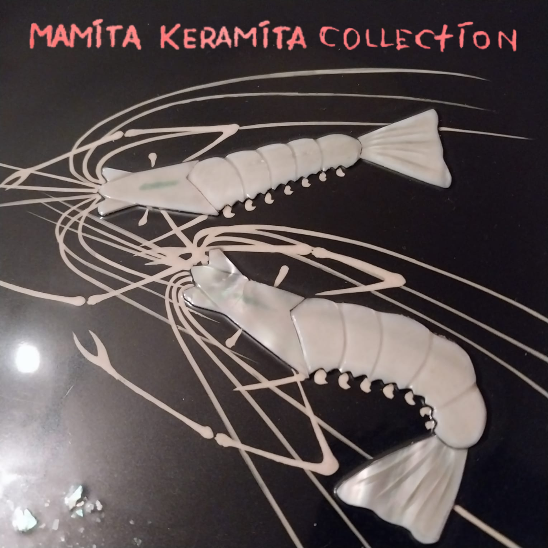 Декоративная тарелка инкрустирована скампи из перламутра.