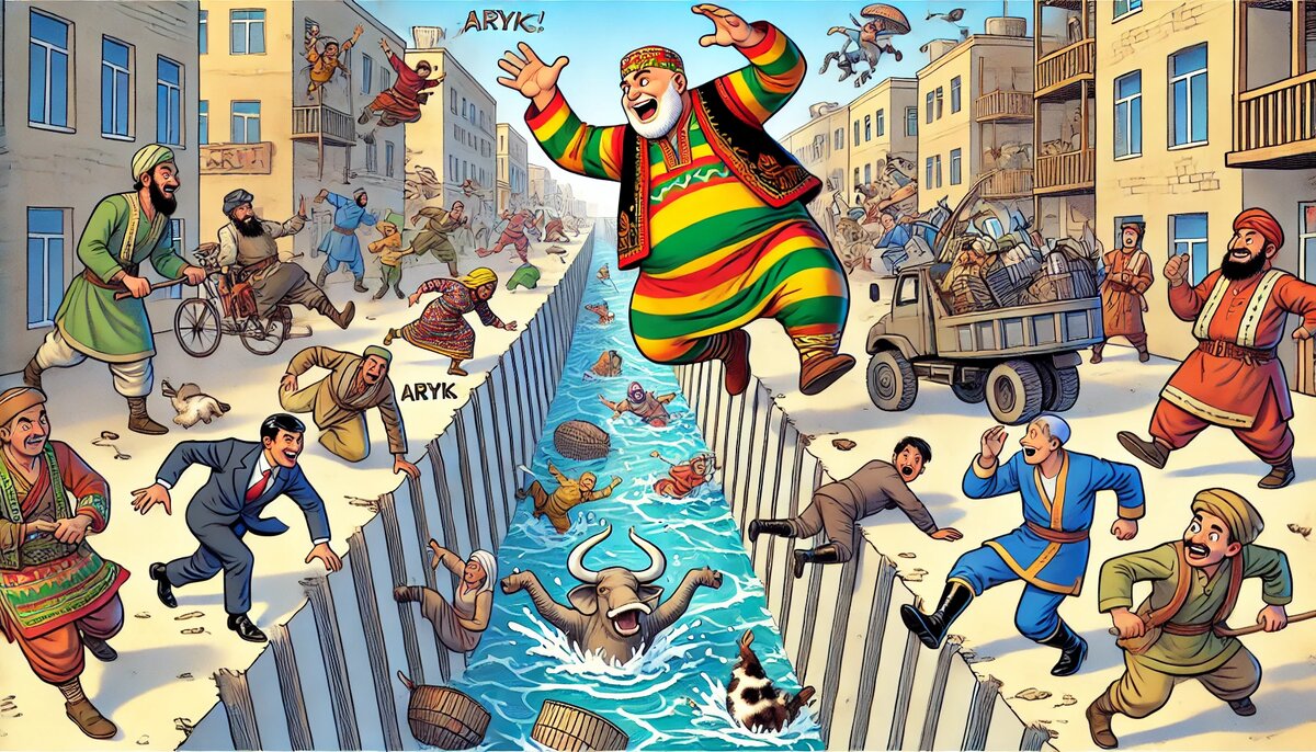Знаете, когда проходишь мимо арыка, всегда есть шанс внезапно стать героем комедийного шоу — упасть, запутаться в ногах и, как в лучших традициях, оказаться в воде до плеч. Но не стоит расслабляться! 🚫