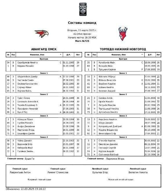 Нападающий «Авангарда» Владимир Ткачёв находится в заявке на матч регулярного чемпионата КХЛ против нижегородского «Торпедо». Эту информацию опубликовали на сайте КХЛ. Звёздный форвард набрал за «ястребов» 86 (20+66) очков в прошлом сезоне. В конце июля прошлого года он получил тяжёлую травму, из-за которой пропустил почти весь регулярный чемпионат. Таким образом, первая игра Ткачёва пришлась на 64-й матч сезона для «Авангарда». Хоккеист станет 46-м «ястребом», заигранным за клуб по ходу «регулярки-2024/25». Последний раз на лёд Владимир Ткачёв выходил 30 марта 2024 года, в седьмой игре ¼ финала Кубка Гагарина – 2024.
