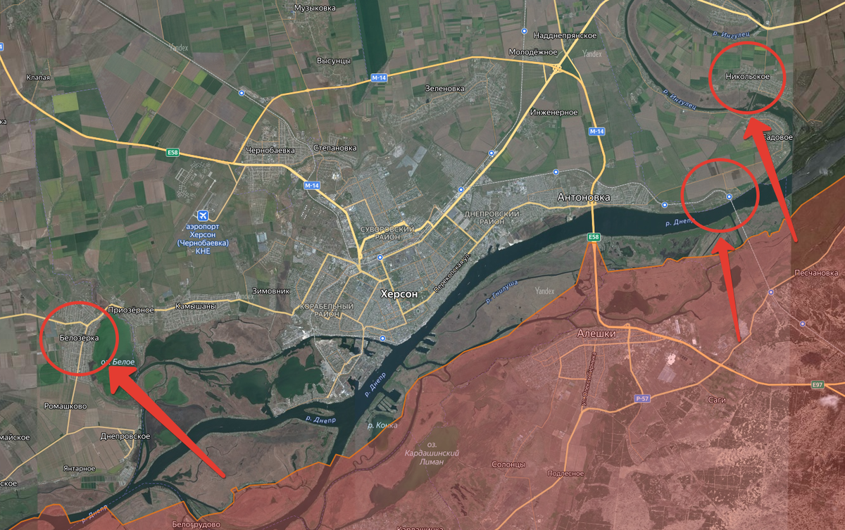 Подразделения группировки войск «Днепр» нанесли очередное серьёзное поражение живой силе и технике механизированной бригады, а также трём бригадам береговой обороны ВСУ. Бои проходили в районе Никольского, Приднепровского и Белозёрки Херсонской области. Точки проведения операций на карте