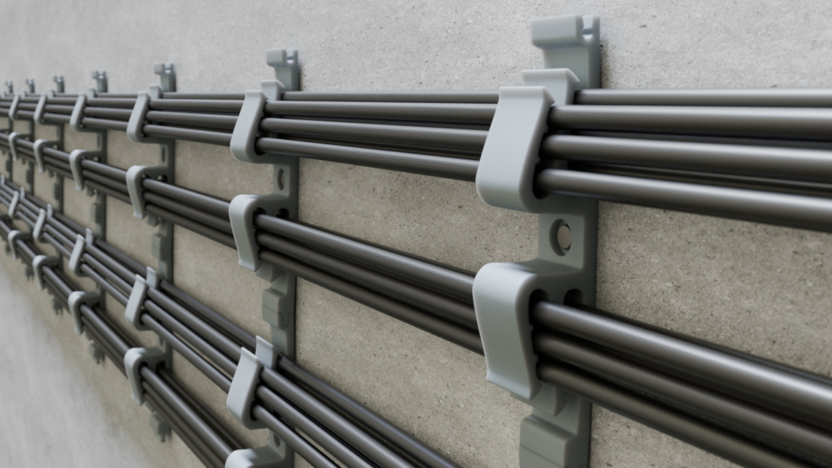 Встречайте новый крепеж, предназначенный для крепления 12 кабелей диаметром до 10 мм без использования гофры. Крепеж может быть использован для прямого монтажа со стволами диаметром от 11 мм, что обеспечивает быструю установку с помощью монтажного пистолета. Главная особенность данного изделия заключается в возможности блочной установки благодаря соединению нескольких держателей специальными фиксаторами. Изготовлен из ПНД, не содержащего галогены. Подходит для эксплуатации в умеренном и холодном климате УХЛ2 и может использоваться на открытом воздухе под навесом.