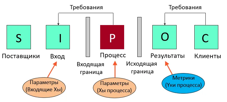 По первым буквам английских названий этих этапов данное представление процесса получило название SIPOC.