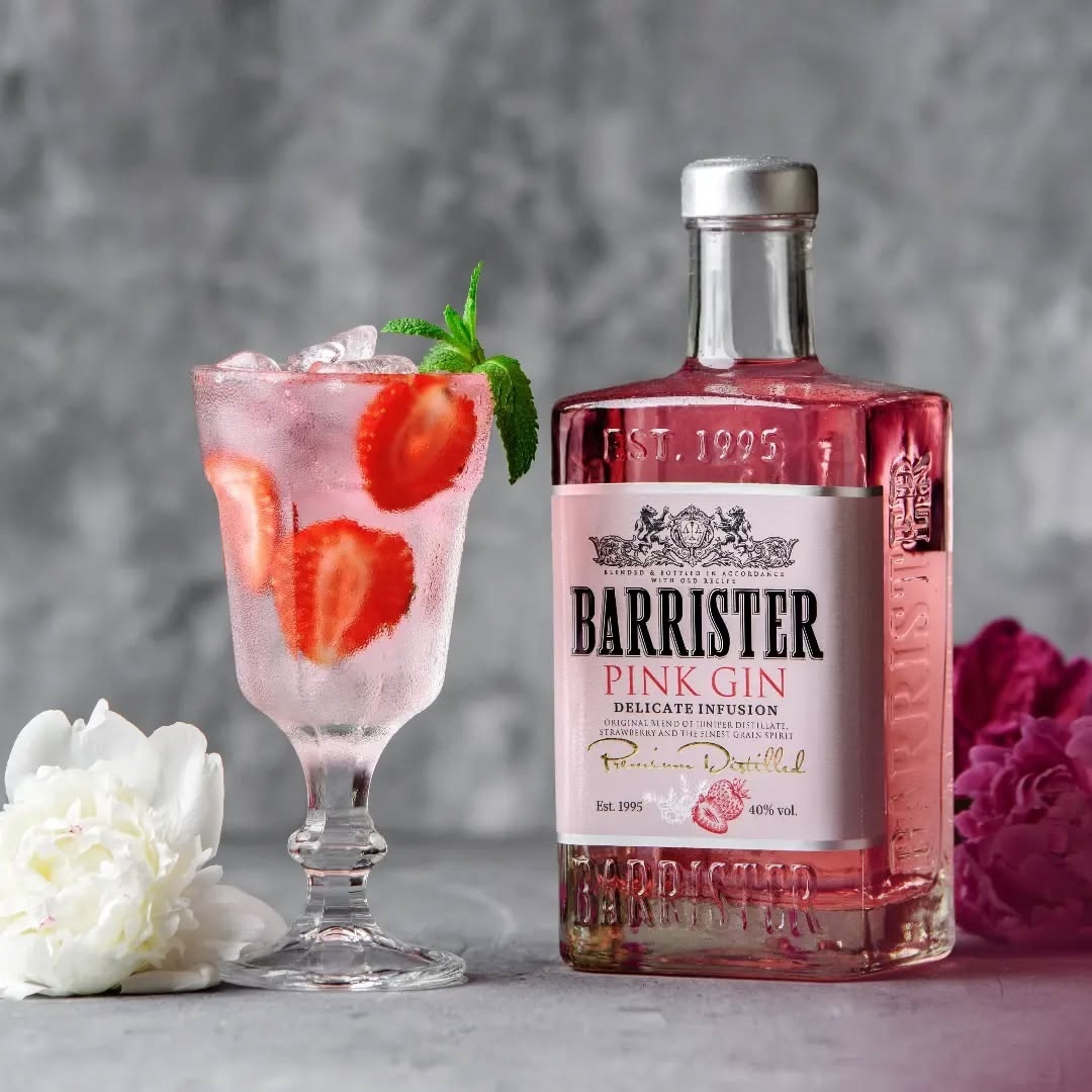 BARRISTER PINK – самый деликатный джин во всей коллекции BARRISTER. Для его производства используются только натуральные ингредиенты: можжевельник, земляника, кориандр, кардамон. Чтобы подчеркнуть аромат и вкус ягод и растений, формирующих букет напитка, сначала из каждого ингредиента создаются ароматные спирты, а потом – изящный и сбалансированный купаж. В ходе деликатной дистилляции сохраняется вся гамма вкуса земляники, которая делает Barrister Pink Gin неповторимым. Рецепт Barrister Pink Gin разработан для коктейлей, созданных удивлять.
