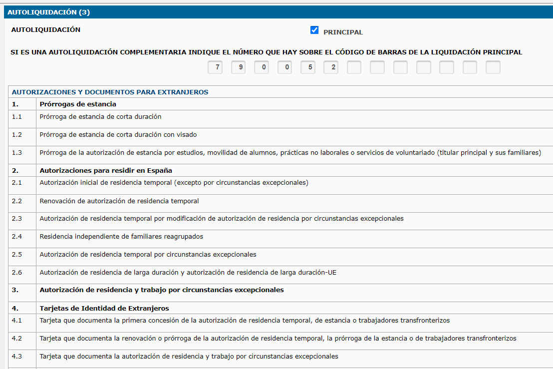 Это таса для экстранхерии для первичной подачи на ВНЖ и для продления ВНЖ! Не путайте. Для полиции на отечатки и получение тархеты нужна другая таса 790-012. Страничка для заполнения тасы 790-052 - (на продление внж) тут. На этой странице 2 опции 1.Acceder a Pagar y enviar la liquidación de la tasa 052 a través de Internet (это оплата через интернет)