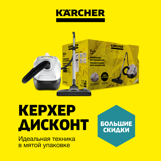 В статье рассказываем, как сэкономить на бытовой технике и купить надежные аппараты для уборки дома от мирового производителя с хорошей скидкой. Недавно крупнейший производитель техники для уборки Kärcher открыл онлайн-магазин Kärcher Дисконт, где можно купить надежную технику с гарантией по выгодной цене, но в упаковке с дефектами. Что такое Kärcher Дисконт Kärcher Дисконт — это уникальная возможность приобрести качественную технику от мирового производителя по выгодным ценам. Магазин предлагает широкий ассортимент исправных аппаратов с гарантией, но в мятой упаковке. Каждое устройство прошло тщательную проверку и находится в полностью исправном состоянии. Более того, все условия гарантии сохраняются: · 5 лет гарантии на бытовую технику, · 2 года на профессиональную, · 1 год гарантии по кассовому чеку на аксессуары, купленные отдельно. Преимущества Kärcher Дисконт Широкий ассортимент. Онлайн-магазин предлагает огромный выбор бытовой техники для дома и сада. На сайте представлено множе