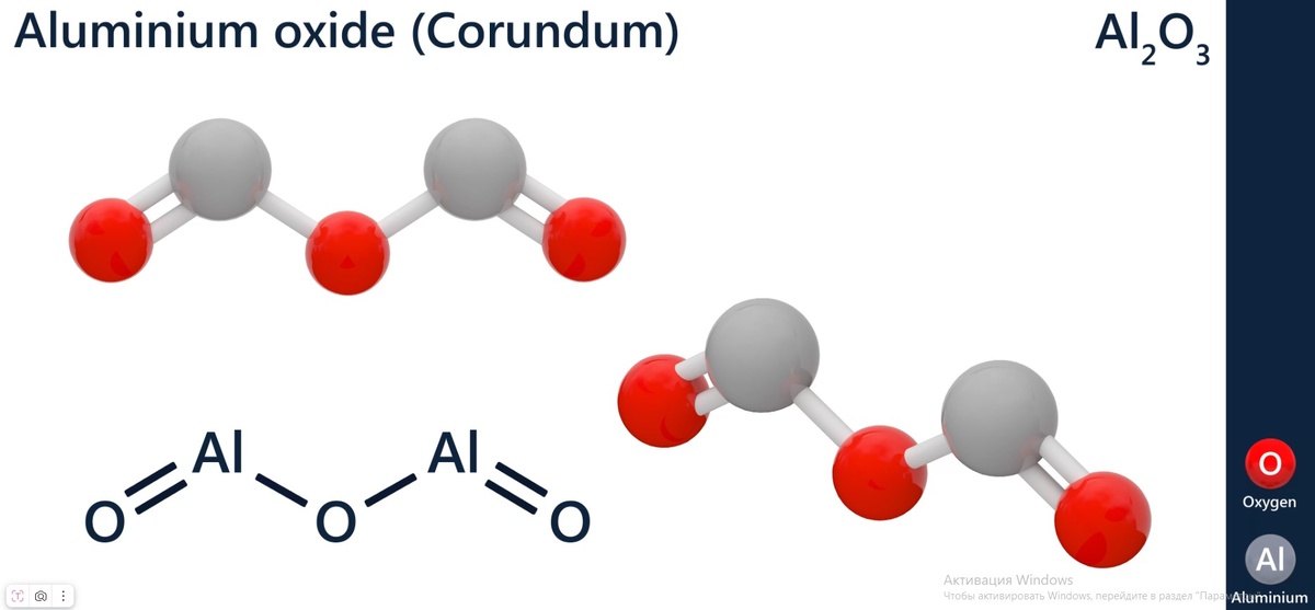 Химические соединения, самородные элементы имеют определённое взаимное расположение атомов, молекул, находясь в твёрдом состоянии (в отличие от жидкого и газообразного), обозначаемое буквами греческого алфавита и словом модификация. Модификации обозначаются по порядку, в зависимости от распространённости, возникают разные модификации от температуры и давления при образовании твёрдого тела. В природе наиболее широко распространена α- модификация (альфа-модификация) оксида алюминия, имеющая тригональную сингонию (тип кристаллической решётки). На воздухе алюминий быстро покрывается оксидной плёнкой. Если оксид образовался в соответствующих условиях, его достаточно, есть возможность роста кристаллов, то получается корунд. Кристаллическая структура и свойства атомов придают корунду выдающиеся данные: уникальную твёрдость и оптические характеристики, последние зависят, в том числе, от примесей, определяющих окраску. По шкале твёрдости Мооса, имеющей 10 делений, корунд имеет твёрдость 9, уступая только алмазу. Мелкие кристаллы корунда, известные как наждак, применяются для шлифовки. При желании ознакомиться с другими модификациями оксида алюминия можно почитать статьи в Википедии, особенно хорошо написана статья на немецком языке, и в специализированных изданиях, указанных в статьях в качестве подтверждения информации.