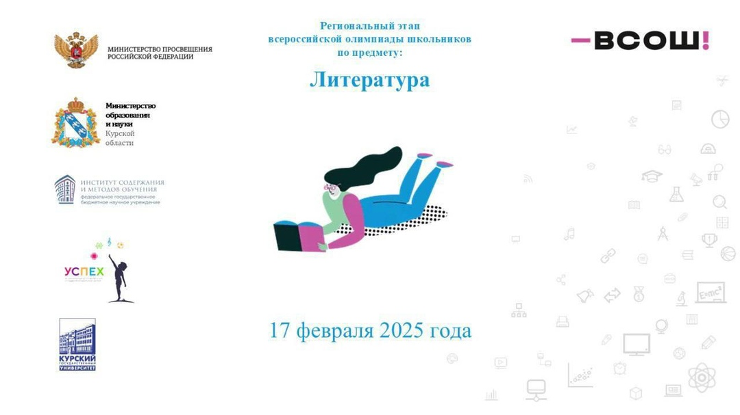 В региональном этапе Всероссийской олимпиады школьников по литературе приняло участие 181 обучающийся образовательных организаций Участникам предстояло выполнить письменные задания различного рода по тематике учебного предмета «Литература». 🏆Победителями регионального этапа стали Полина Харазова (лицей № 21 г. Курска, 9 класс), Александр Калуцкий (школа №6 города Курчатова, 10 класс), Ольга Лебедева (гимназия № 25 города Курска, 11 класс). Еще 60 школьников удостоены статуса призеров. 📎Рейтинги участников регионального этапа ВсОШ публикуются на сайте Министерства образования и науки Курской области по ссылке: https://minobrnauki46.ru/dopolnitelnaya-informacziya/olimpiady/vserossijskaya-olimpiada-shkolnikov/?clckid=dba9719c