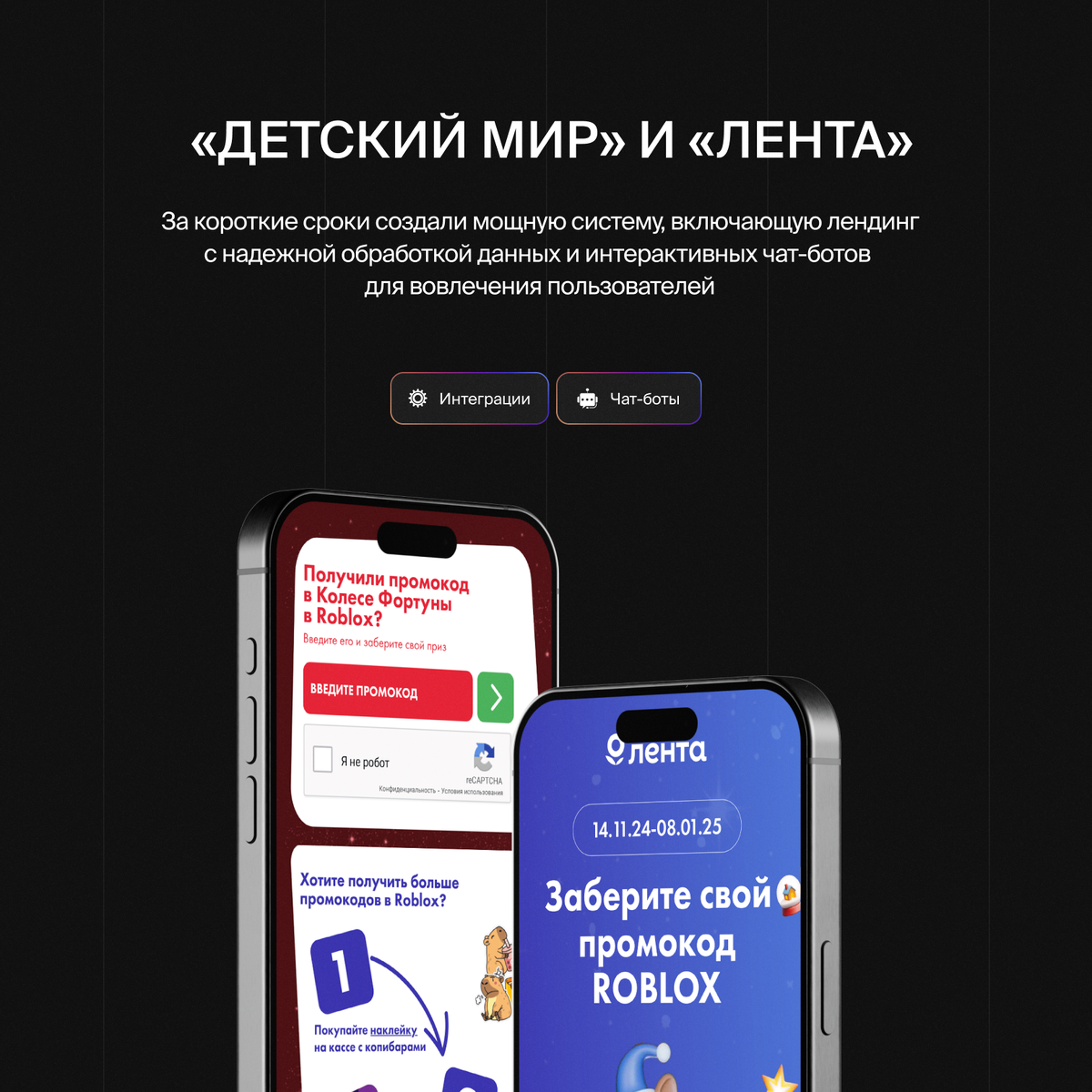 Создать масштабную и функциональную систему всего за 10 дней? Это реально! Сегодня расскажем, как мы разработали лендинг и чат-ботов для лидеров рынка — Ленты и Детского Мира. Клиенты поставили перед нами четкую цель: разработать единую систему, объединяющую лендинг и чат-ботов в мессенджерах. Система должна обрабатывать QR-коды, отслеживать пользовательские действия и обеспечивать удобную коммуникацию через Telegram и ВКонтакте. Мы предложили комплексный подход: В сжатые сроки нам нужно было не просто разработать систему, но и протестировать ее на реальных пользователях. Ключевыми сложностями стали: Интеграция сложных аналитических механизмов, обеспечение высокой скорости обработки запросов и гибкость интерфейсов для разных мессенджеров. Однако несмотря на такой профессиональный вызов, всего за 10 дней мы удачно справились с этой задачей: В итоге у нас получилось мощное и удобное решение, которое соответствует запросам клиентов, а также удерживает их на сайте, делая их взаимодействие
