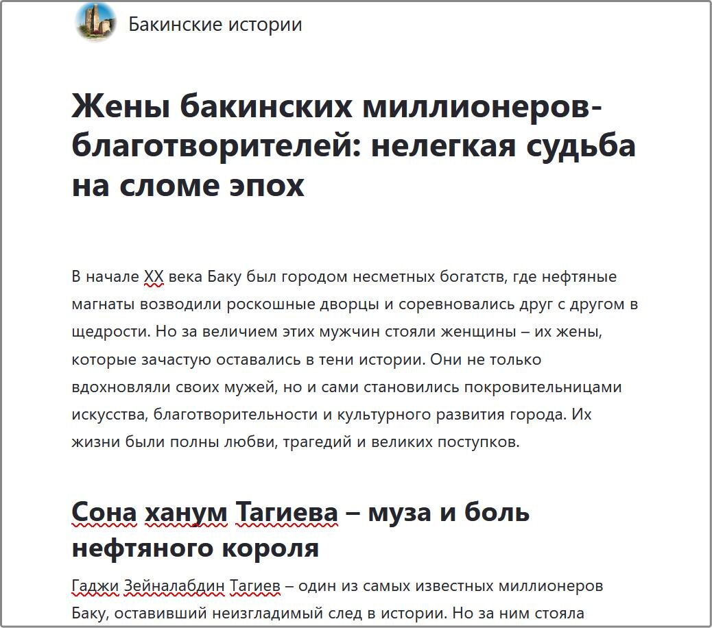 Первоначально, я хотел написать статью обо всех женах бакинских меценатов на рубеже XIX – XX веков. Тех, кто активно участвовали в благотворительной деятельности, помогали супругам и были их опорой.