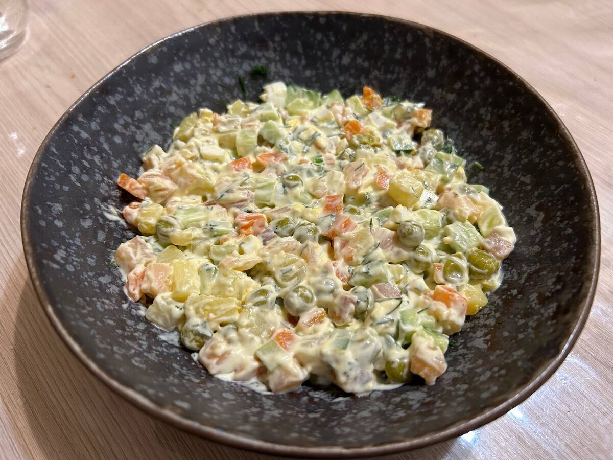 Казалось бы, что может быть привычнее салата Оливье? Но что, если немного изменить состав и получить совершенно новый вкус? 🤔 Недавно моя дочь, которая обычно избегает салатов, попробовала этот вариант и осталась в полном восторге! Секрет прост: никаких солёных огурцов и колбасы – вместо них свежий огурец и слабосолёная красная рыба. Эти две замены полностью преображают привычный Оливье, делая его невероятно вкусным и свежим. Попробуйте – вам точно понравится! 1️⃣ Подготовка ингредиентов 2️⃣ Нарезка 3️⃣ Сборка салата 4️⃣ Финальный штрих Готово! Осталось насладиться этим новым взглядом на классический Оливье. Приятного аппетита! 😋 ✅ Горошек консервированный – 1 банка