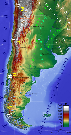 Вдоль всей западной границы Аргентины проходят Анды, крупнейший горный массив Западного полушария, сложившиеся, в основном, во время альпийского горообразования. Они отличаются сложностью и разнообразием геологического строения.