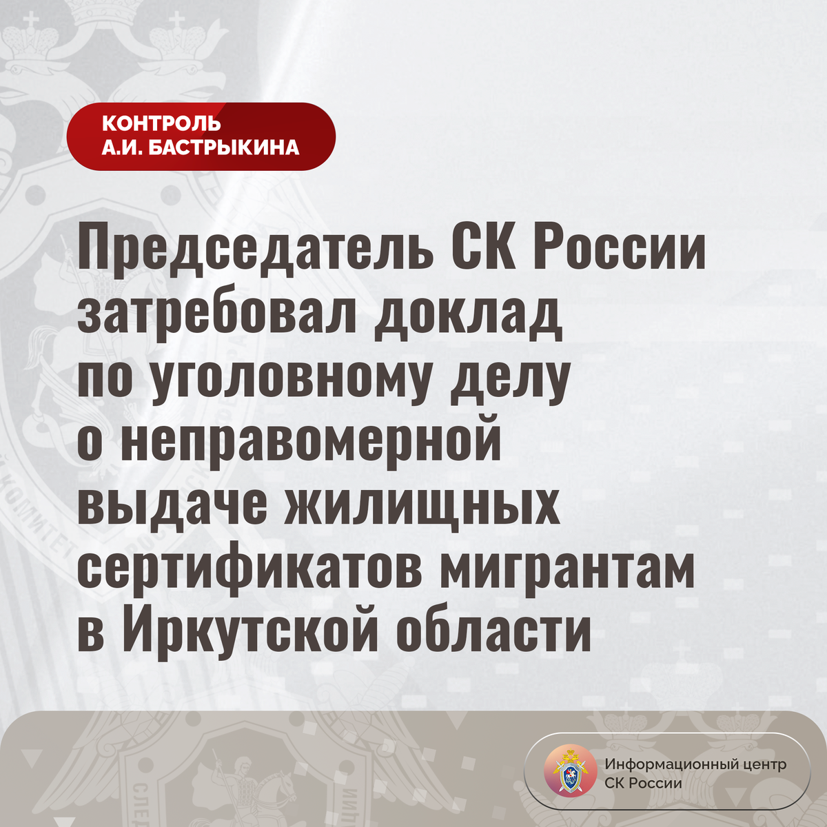 Председатель СК России затребовал доклад по уголовному делу о неправомерной выдаче жилищных сертификатов мигрантам в Иркутской области