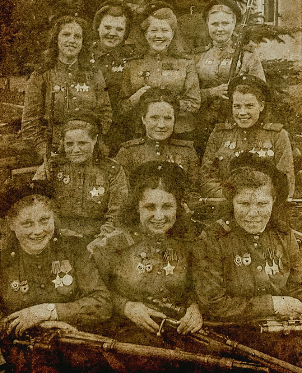 На пожелтевшем снимке 1945 года застыли во времени десять женщин в военной форме. Их лица — не портрет страха, а гимн несгибаемой воли. Это отряд советских снайперш, прошедших сквозь ад войны. Их взгляды устремлены вдаль, будто они уже видят победу, ради которой готовы отдать всё. Кто они? Героини, о которых долго молчали. К 1941 году СССР столкнулся с катастрофическими потерями. Традиционные представления о «слабом поле» рухнули под грузом военной реальности. Женщины встали к станкам, рыли окопы, а самые отчаянные взяли в руки винтовки. Снайперское дело стало для многих из них не просто ролью — миссией. Точность, хладнокровие и терпение, считавшиеся «женскими» качествами, превратились в смертоносное оружие. Центральная женская школа снайперов в Подольске готовила их за месяцы, а не годы. Девушки учились маскироваться, считать ветер, неделями лежать в снегу. «Нас не жалели, — вспоминала выпускница школы Анна Богданова. — Говорили: «Фашист вас жалеть не будет». — «Леди Смерть», уничтожи