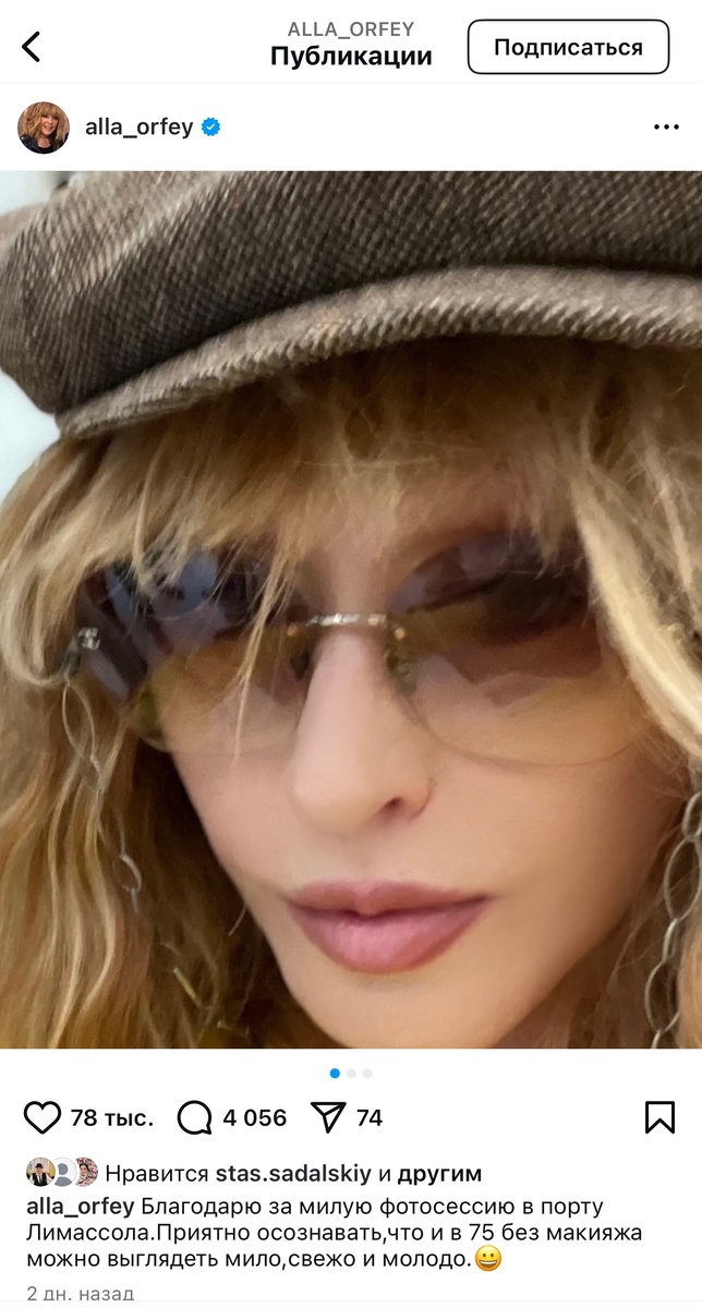 Алла Борисовна в запрещенной у нас соцсети «поблагодарила» (хотя, впрочем, можно и без кавычек) журналистов за импровизацию на Кипре: