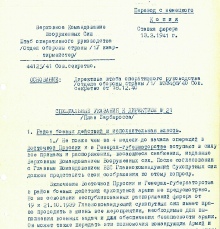 В это день была принята директива начальника штаба верховного главнокомандования вермахта Кейтеля об установлении оккупационного режима на подлежащей захвату территории СССР (полный текст на сайте президентской библиотеке - ТУТ