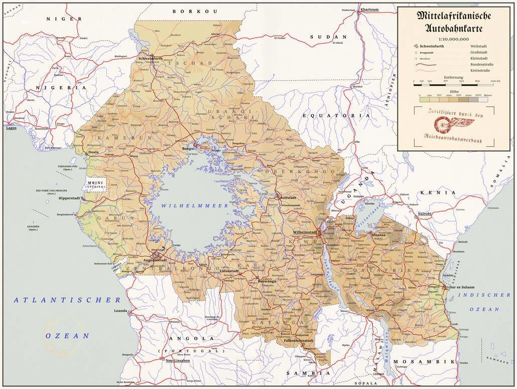 Тем временем Рейхсавтобан связывает страну вместе. Проект, начавшись в 20-х годах, чтобы связать Бому с Дар-эс-Саламом, сегодня связывает каждый уголок страны, представляя победу Германии над Сердцем тьмы (хотя тот факт, что они утопили половину этой территории, вероятно, помог). Немцы влюбились в автобан, проезжая от пустынь Чад до джунглей Конго до заснеженных вершин Киву, слушая их рок-н-ролльную музыку и выпивая свою Фанту.