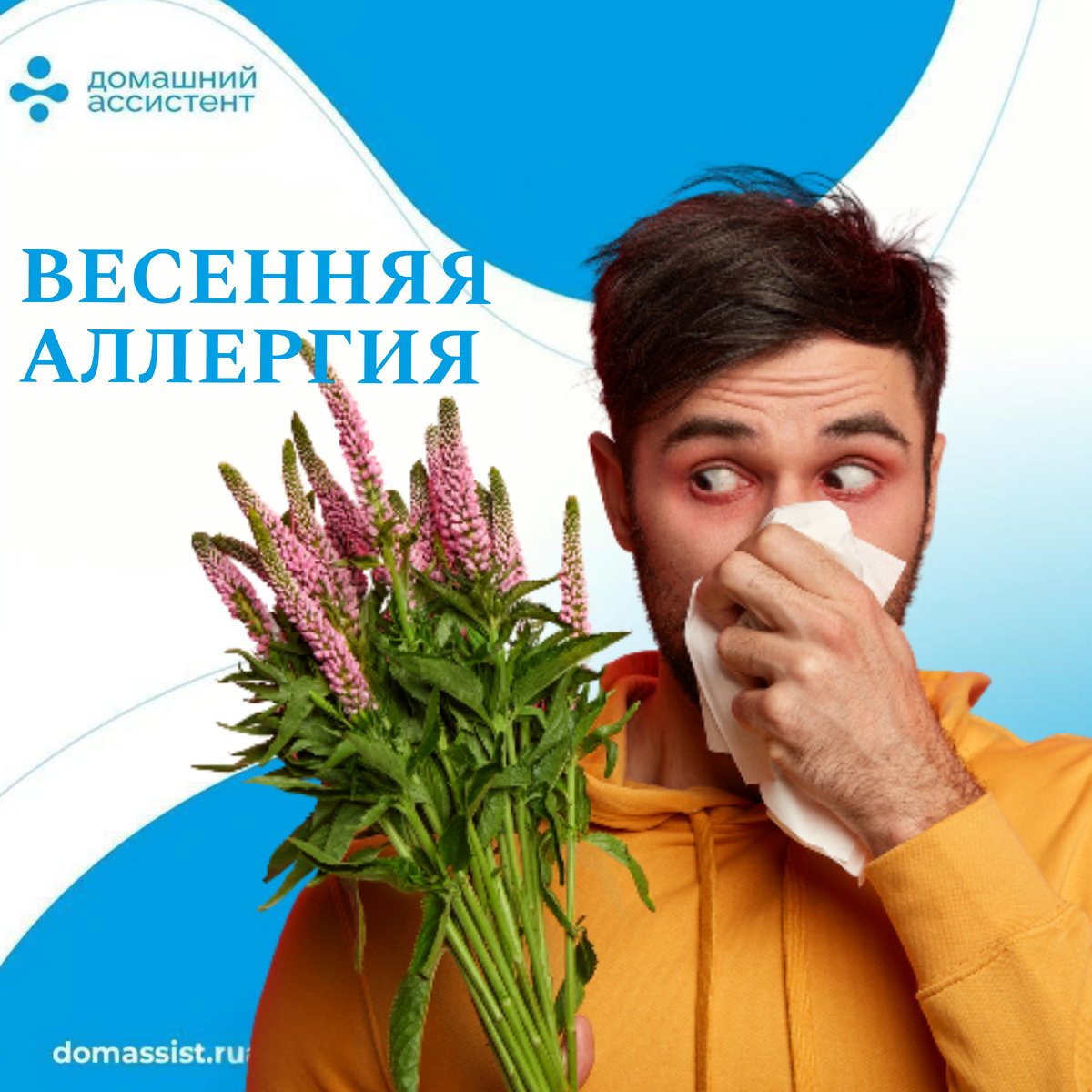 С приходом весны многие сталкиваются с неприятным спутником – сезонной аллергией. Особенно тяжело приходится пожилым людям, чья иммунная система может быть ослаблена. Рассмотрим, как можно облегчить симптомы и встретить весну во всеоружии. Понимание причин Весенняя аллергия чаще всего вызвана пыльцой деревьев и трав. В воздухе повышается концентрация аллергенов, что приводит к реакции иммунной системы. Симптомы, требующие внимания: Как облегчить состояние: Особенности ухода за пожилыми людьми Пожилым людям, страдающим от аллергии, требуется особое внимание. Важно следить за регулярным приемом назначенных лекарств и своевременно обращаться к врачу при ухудшении состояния. Наш сервис "Домашний Ассистент" готов оказать профессиональную помощь в уходе за пожилыми людьми с аллергией. Мы обеспечим контроль за приемом лекарств, поможем создать комфортную среду в доме и окажем необходимую поддержку. Весна – прекрасное время года, и даже аллергия не должна мешать наслаждаться его красотой. Сле