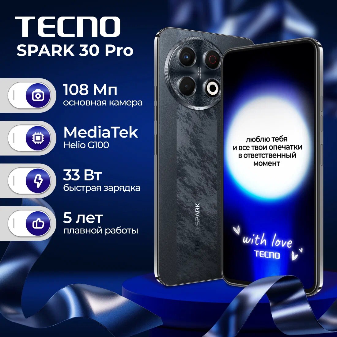 Ключевые особенности TECNO SPARK 30 Pro 8/128 ГБ включают: