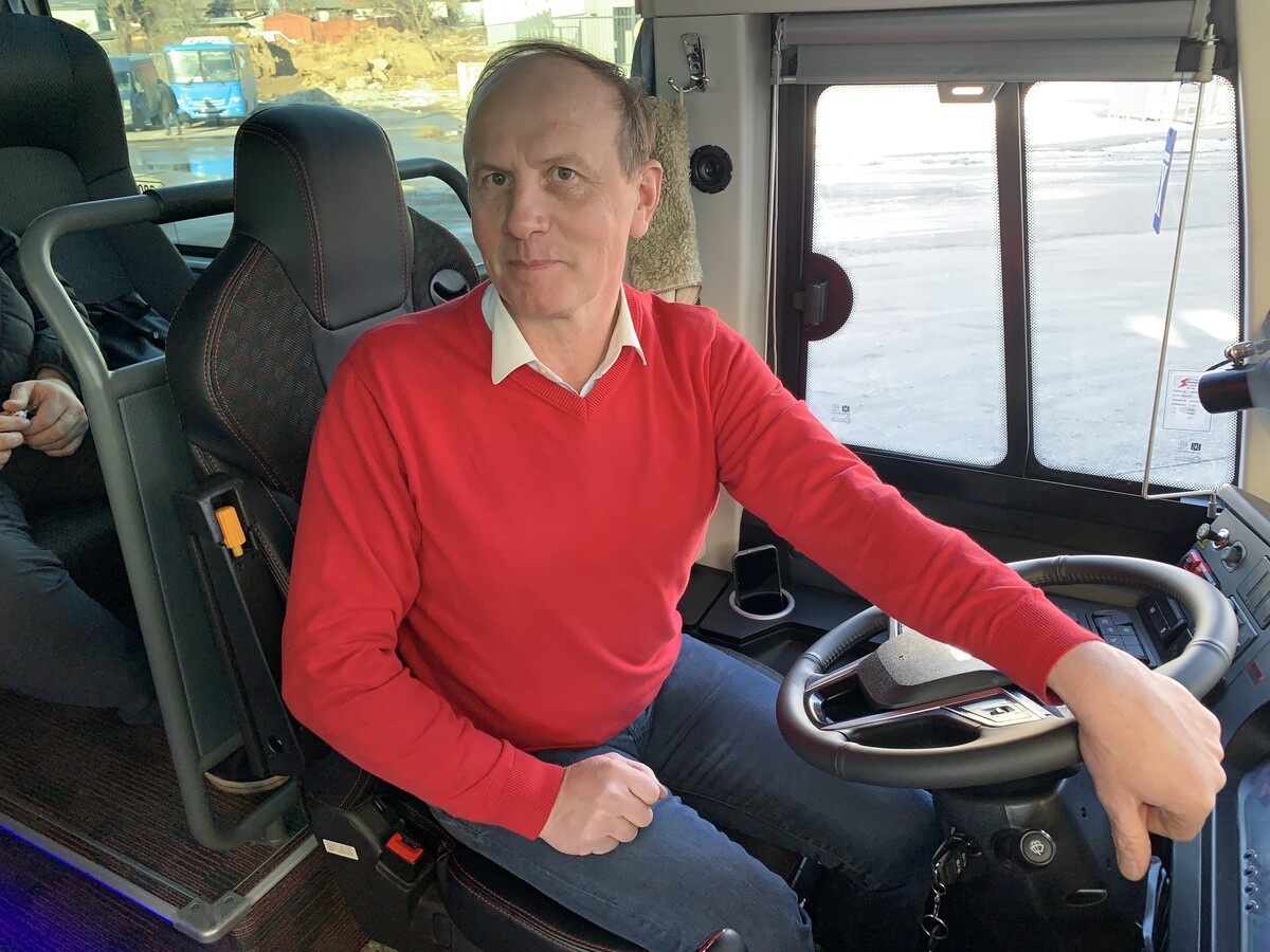 — Это мои первые рейсы на автобусе, ещё не со всеми функциями разобрался, привыкаю, — объясняет Владимир.