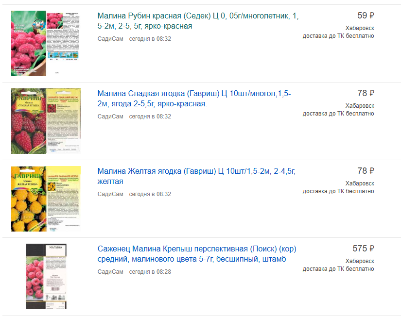 Помимо саженцев малины, в магазине «СадиСам» представлены семена бобовых и овощей, плодовых деревьев, бахчевые культуры и другие дачные растения. Здесь же можно приобрести садовые перчатки, дождевики и другие товары, которые пригодятся для работ на огороде. Еще больше об ассортименте вы можете узнать по ссылке.