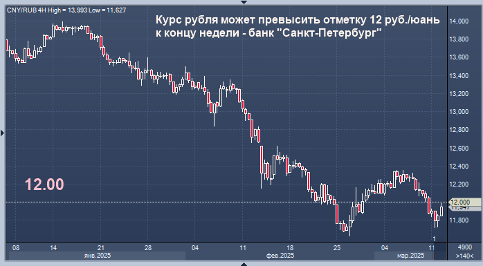 Курс рубля может превысить отметку 12 руб./юань к концу недели - банк "Санкт-Петербург" Курс доллара к рублю расчётный, фьючерс, вечный фьючерс и межбанк. Курс евро к рублю расчётный, фьючерс, вечный фьючерс и межбанк. Курс юаня к рублю биржевой, фьючерс, вечный фьючерс и межбанк. Курс рубля может превысить отметку 12 руб./юань к концу недели, полагают аналитики банка "Санкт-Петербург". "Рубль во вторник заметно укреплялся. Восходящую динамику российская валюта показывала на фоне вновь приблизившейся в глазах инвесторов деэскалации, - пишут эксперты в обзоре. - В среду курс CNY/RUB находится у 11,95 руб./юань. Другие валюты EM с утра также преимущественно слабеют. Сформировавшийся геополитический фон играет на стороне рубля, но к концу недели курс все же способен превысить отметку в 12 руб./юань". Нефтяные цены во вторник слабо, но все же выросли. По мнению аналитиков, восстановлению котировок способствовало дальнейшее ослабление доллара в мире. В среду фьючерсы Brent торгуются у $69,6