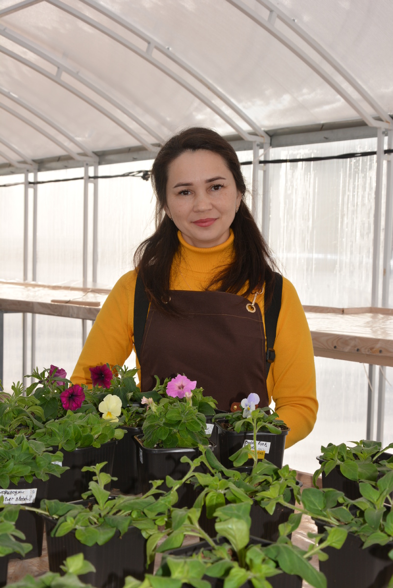 - Лет пять назад начали складываться возможности заняться любимым делом. Началось с приведения в порядок палисадников у нашего многоквартирного дома – решили мы с дочкой устроить красоту в нашем дворе и высадили там цветы. Процесс нам очень понравился, а соседи были в восторге. Вместе с тем, ушла в отставку со службы по выслуге лет и время для увлечений появилось. Поэтому стала в квартире заниматься выращиванием рассады цветов – удавалось выращивать до 700 растений. Реализовывала через соцсети, Авито. Раскупали у меня всё, даже потом звонили, узнавали, есть ли цветы ещё в наличии. Тогда я поняла, что рассада цветов – товар востребованный, и задумалась над тем, чтобы выращивать больше рассады. Очень захотела развиваться в этом направлении, - рассказывает Елена Фанисовна.