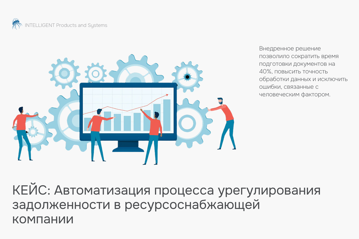 Наша компания ИПС завершила проект по внедрению программного робота для автоматизации работы подразделения урегулирования задолженности в одной из ресурсоснабжающих организаций. На робота возложена часть процесса. Решение позволило сократить временные затраты на подготовку документов на 40% и повысить точность обработки данных. Описание проекта Перед подразделением стояла задача оперативного формирования комплекта документов для работы с должниками и последующей подачи в суд.