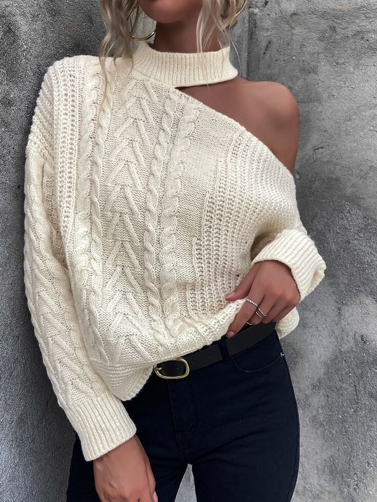 Этот с виду простой летний вязаный пуловер имеет 2 очень интересные детали — оригинальный узор на плече и неровный нижний край с разрезом с боку. Таким образом обычный пуловер превращается в дизайнерскую вещь.
