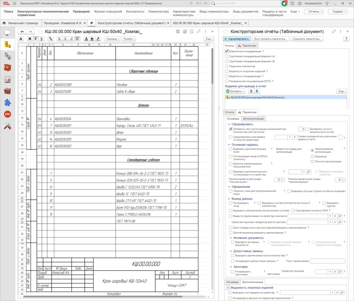 Компания Аппиус сообщает о выпуске нового функционала по формированию конструкторских и технологических отчетов средствами платформы 1С:Пре