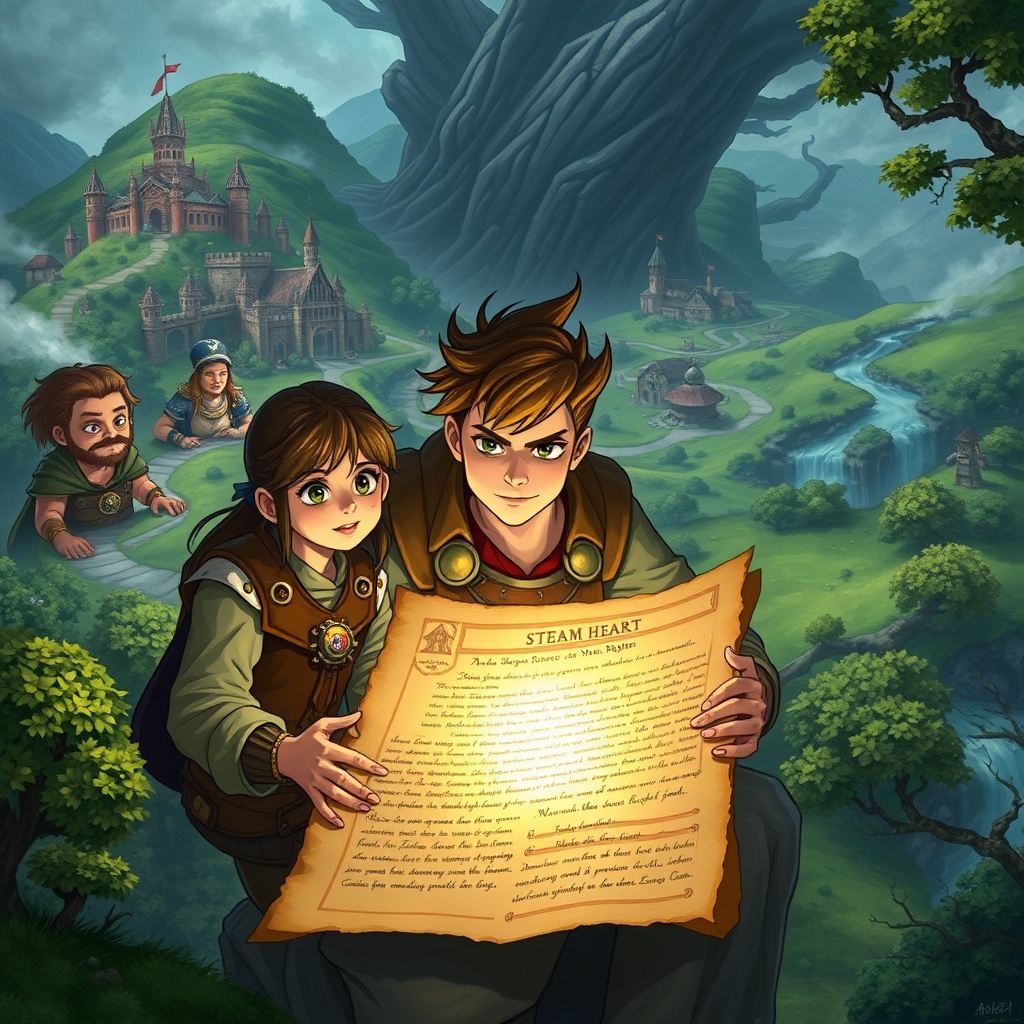 В королевстве Эльдория, где магия и наука переплетались, стоял величественный город Арквилль, омываемый реками и окруженный зелеными холмами. Здесь жил юный механик по имени Эдгар, чья страсть к технике привела его к изучению древних манускриптов, описывающих забытые технологии. Однажды, копаясь в старой библиотеке, он наткнулся на загадочный свиток о "Паровом Сердце" — легендарном артефакте, способном соединить магию и механизмы. Говорили, что, обладая этим сердцем, можно создать машину, способную изменить мир. Вдохновленный находкой, Эдгар собрал команду единомышленников: храброго кузнеца Грифа, загадочную магессу Лиру и мудрого ученого Аделара. Вместе они отправились в опасное путешествие в темный лес, где, согласно легендам, скрывалось Паровое Сердце. На пути их ждали испытания: ловушки, магические существа и древние стражи. Дружба и смелость помогали им преодолевать все преграды. Наконец, достигнув древнего храма, они обнаружили Паровое Сердце, сверкающее в центре зала. Чтобы за
