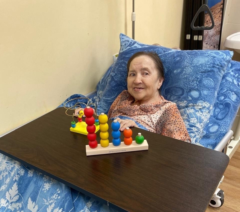 Многим нашим подопечным помощь требуется после инсульта. И самая разная – средства гигиены, кровати, ходунки, трости, инвалидные коляски или вот даже прикроватные столики, которые тоже играют немаловажную роль. 74-летняя Нина Васильевна перенесла инсульт несколько лет назад и передвигается теперь только в пределах своей постели. Раньше это было тяжеловато, но после того, как мы доставили в Курский дом социального обслуживания, где она живет, многофункциональные кровати, стало проще. Теперь Нине Васильевне легче приподниматься и присаживаться, держась за поручни. А еще ей очень пригодился прикроватный столик, благодаря ему она самостоятельно ест, а значит, чувствует себя более уверенно, и еще делает упражнения на мелкую моторику. Александре Семеновне 86 лет, и 10 из них она лежачая, тоже из-за инсульта. Столик появился и у нее, и, так же как ее соседка Нина Васильевна, она может сама завтракать/обедать/ужинать, не завися от персонала, и разрабатывать руки разными занятиями, сидя в крова