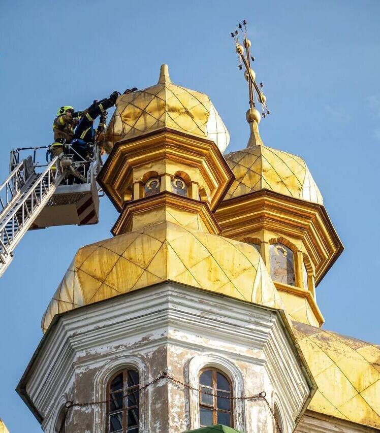 Дурной знак? На одном из храмов Киево-Печерской лавры обрушился крест. С украинскими флагами истории ещё интереснее