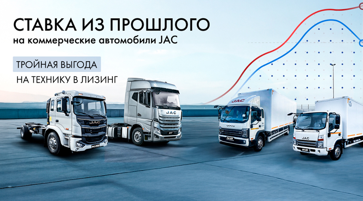 ООО «ДЖАК Автомобиль» запускает уникальную совместную программу «Ставка из прошлого» разработанную в сотрудничестве с Совкомбанк Лизинг, которая предоставляет клиентам тройную выгоду: специальные условия по партнерской программе от Совкомбанк Лизинг, субсидия от производителя в размере 300 000 рублей и продукт «Правильное решение», позволяющие приобрести коммерческую технику JAC на лучших условиях.