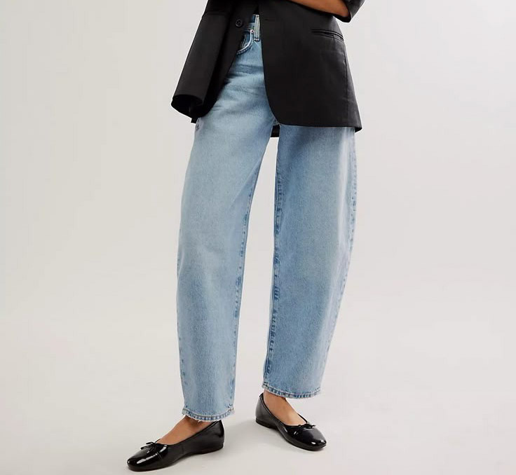 Слово slouchy переводится как "сутулый". Это джинсы с высокой талией, широкие в области бедер и зауженные книзу. Название связано с тем, что со стороны такой переход объемов может слегка напоминать сутулость.