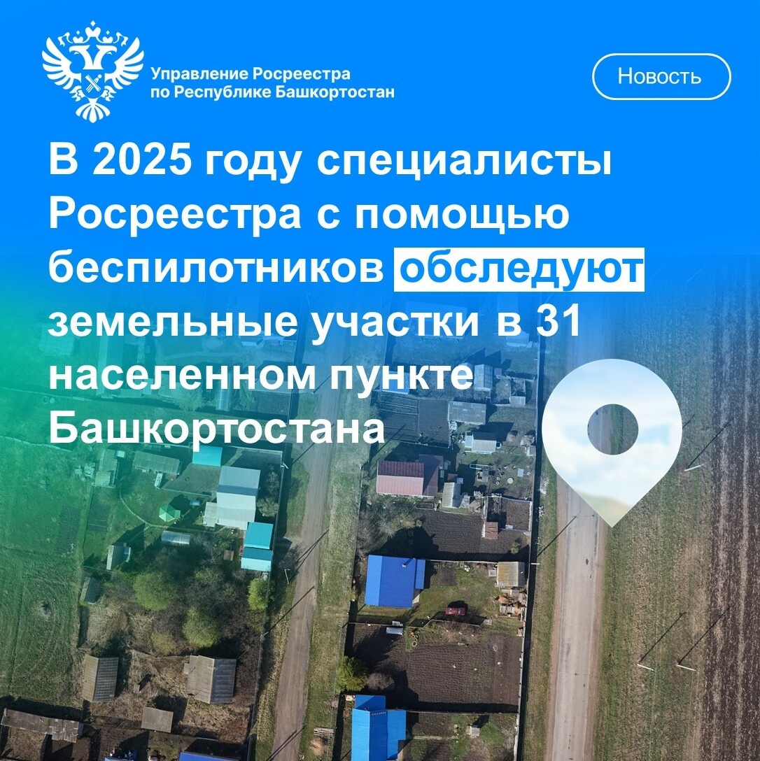 В 2025 году Росреестр и Роскадастр Башкортостана планируют аэрофотосъёмку с помощью трёх беспилотников в 31 населённом пункте 5 районов (Архангельский, Бирский, Гафурийский, Иглинский, Татышлинский), общая площадь — не менее 2400 га. Полеты начнутся в апреле. Цель — выявление нарушений земельного законодательства и исправление реестровых ошибок без прямого контакта с собственниками. Руководитель Управления Росреестра по РБ Петр Клец подчеркнул снижение административной нагрузки. В 2024 году аналогичная съёмка в других районах выявила 869 участков с нарушениями. Обработка снимков с БВС позволяет создавать высокоточные ортофотопланы для определения местоположения объектов с привязкой к географическим координатам.