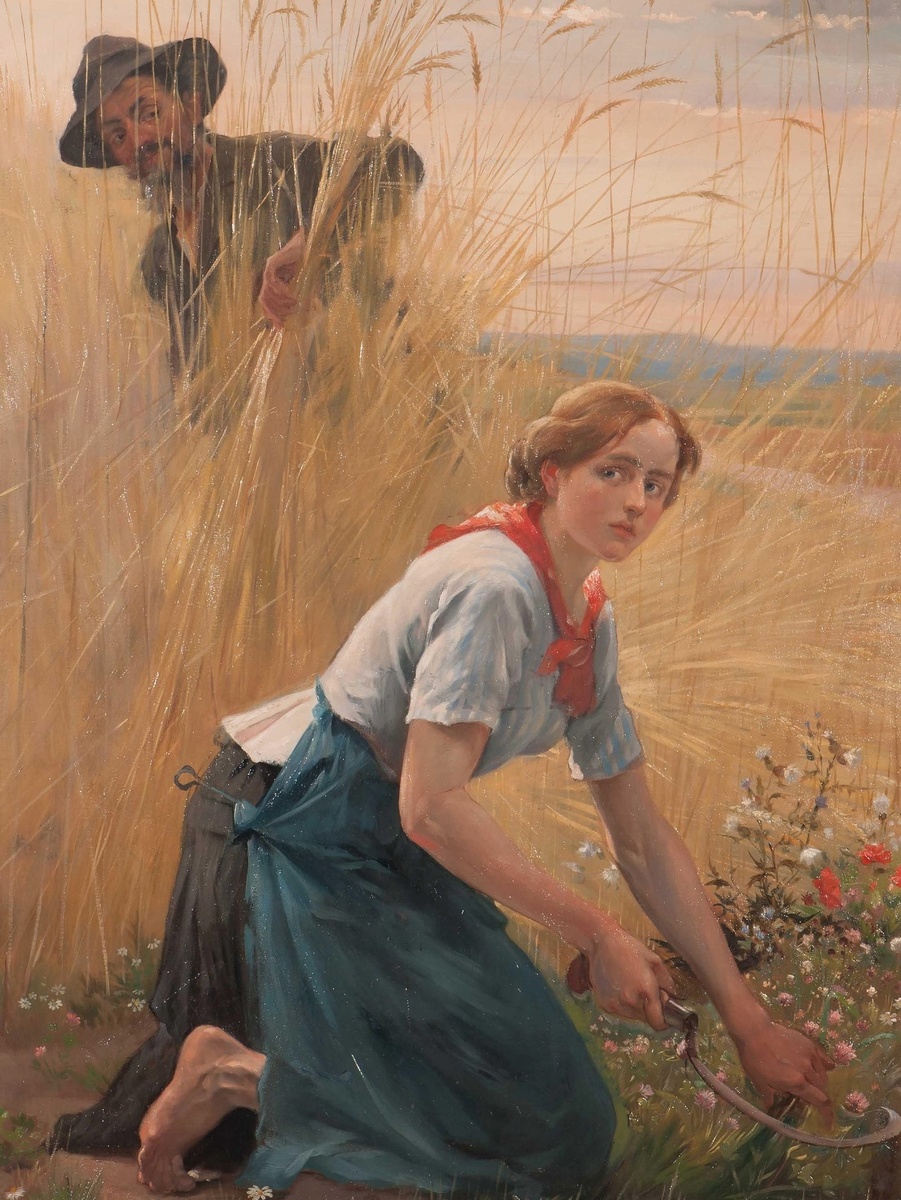 Закатное солнце освещало золотые колосья, ветер чуть заметно колыхал стебли. Мари задержалась, чтобы срезать несколько цветов – её мать любила васильки, а она не успела принести их утром. Девушка опустилась на колени, провела пальцами по тонким лепесткам.