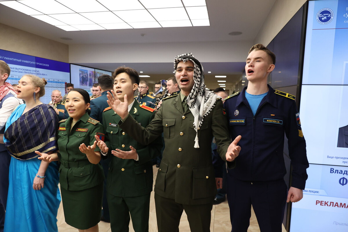В Санкт-Петербургском гуманитарном университете профсоюзов (СПбГУП) прошел XIX студенческий вечер восточной поэзии. На сцене Театрально-концертного зала им. А. Петрова встретились студенты из двадцати трех стран. Более 70 участников из 23 стран мира вышли на сцену, чтобы превратить ее в культурный мост между государствами. Абхазия, Белоруссия, Зимбабве, Китай, Конго – география фестиваля читается как страницы атласа, а его лейтмотив – любовь и добро, выраженные через искусство. «Сначала это был конкурс стихов, где участники делились любимыми произведениями на родном языке с переводом на русский. Это получалось и хорошо, и наивно, и очень искренне. Со временем конкурс обрел творческую форму: появились национальные костюмы и музыкальные номера. В итоге это превратилось в красивый и эмоциональный концерт, настоящий праздник», – сказала первый проректор СПбГУП, профессор Лариса Пасешникова. ПОДЕЛИТЬСЯ КУЛЬТУРОЙ Студент Гуманитарного университета профсоюзов Ондар Эренчин Чамьян ознакомил зр