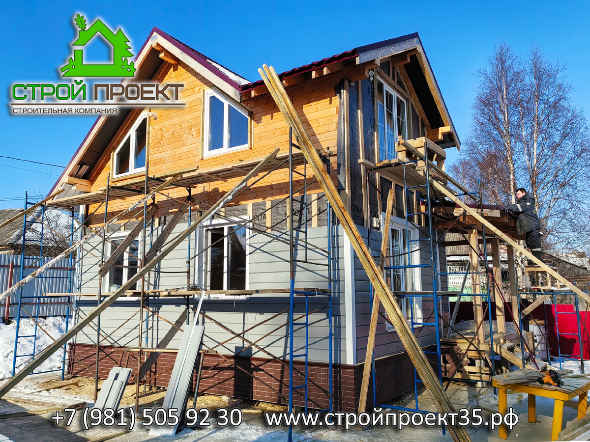 Отделка фасада дома из бруса в д. Марково, Вологодского р-на