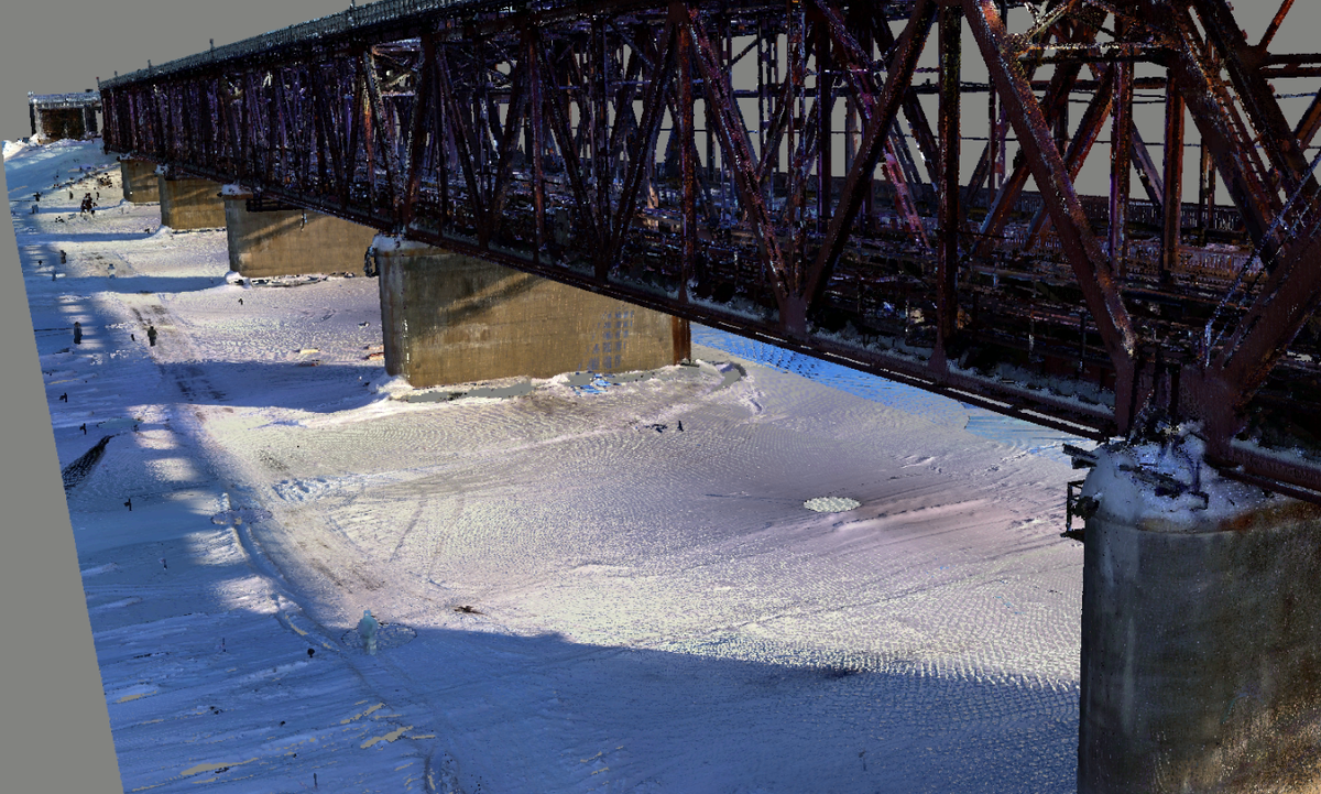 Беспилотные технологии создают единые плотные облака зданий и сооружений с миллиметровыми точностями, как снаружи, так и внутри. Основные цели: 1. 3D-моделирование: создание цифровых моделей для проектирования и реконструкции. 2. Инспекция: выявление деформаций, трещин и повреждений. 3. Контроль качества: сравнение построенного объекта с проектом. 4. Документирование: архивирование точных данных для будущих работ. 5. Анализ геометрии: изучение сложных конструкций и расчет нагрузок. 6. Визуализация: создание реалистичных 3D-моделей для презентаций. 7. BIM: интеграция данных в информационные модели для управления объектом. 8. Исследования: разработка новых технологий и методов строительства. Облако точек создается с помощью лазерного сканирования (LiDAR) и/или фотограмметрии, обеспечивая высокую точность и детализацию. Это особенно важно для сложных конструкций, таких как мосты, где точность критична.