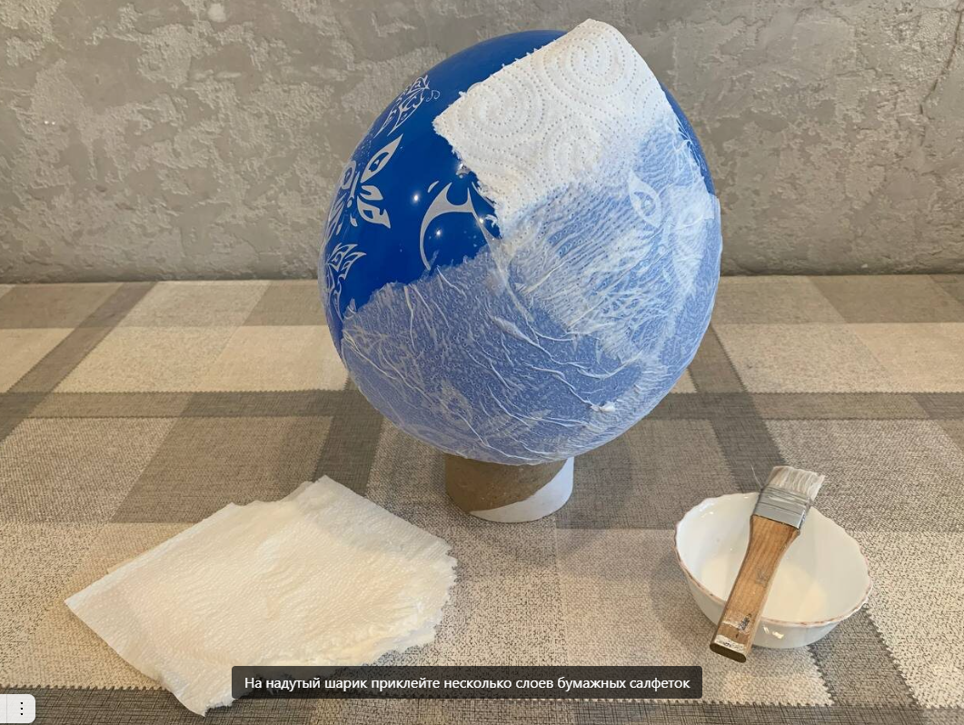 День космонавтики приближается, и это отличная возможность проявить свои творческие способности и вместе с детьми создать оригинальную поделку. В этой статье предлагаю идею объемной поделки на космическую тему, которую можно отнести на выставку в детский сад или школу. Итак, будем делать шар, на котором изображен, конечно же, космос: планеты, звезды и космонавт. В этой статье подготовила для вас пошаговую инструкцию с фото. Вперед к звездам! Очень люблю делать объемные шары с помощью бумажных салфеток и воздушного шара. У меня на канале есть несколько мастер-классов с ними (снеговик, пасхальная композиция и воздушный шар). В этот раз решила использовать заготовку для космической поделки. Итак, надуваем воздушный шар и приклеиваем к нему небольшие кусочки бумажных салфеток (стандартную салфетку делю на 4 части). Первый слой обязательно клеим на воду, следующие разбавленным водой клеем ПВА (2 части клея, 1 часть воды). Для шара на фото мне потребовалось 3 слоя салфеток. Каждый слой нужно
