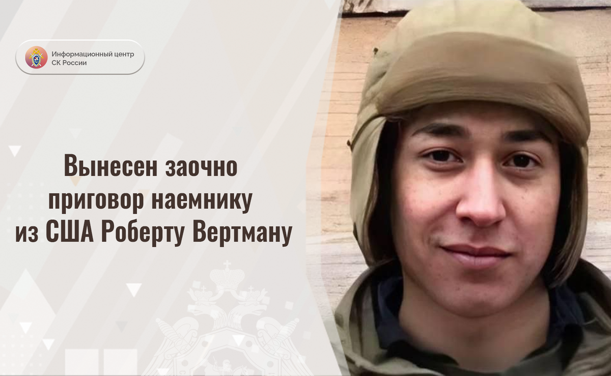 Доказательства, собранные Следственным комитетом России, признаны судом достаточными для вынесения приговора в отношении гражданина Соединенных Штатов Америки Роберта Вертмана. Он признан виновным в совершении террористического акта на территории Курской области и наемничестве (пп. «а», «в» ч. 2 ст. 205, ч. 3 ст. 359 УК РФ).