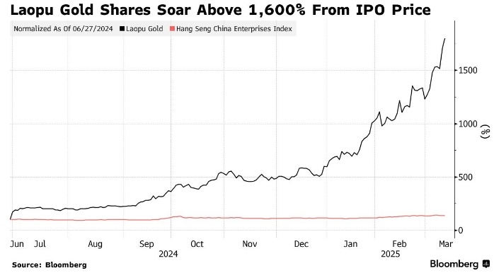 Инвесторы всё больше верят в то, что китайское потребление восстановится после многих лет экономии Если вы сомневаетесь в том, что Гонконг снова охвачен лихорадкой IPO, достаточно взглянуть на стремительный рост акций Laopu Gold Co. более чем на 1600% с момента их размещения на бирже менее года назад. В среду на торгах в Гонконге (см. также график индекса акций города) акции компании выросли на 15%, а затем закрылись на 3% выше. Сейчас рыночная стоимость Laopu Gold Co., базирующейся в Пекине, составляет $15 млрд, что превышает стоимость Chow Tai Fook Jewellery Group Ltd. и Pandora A/S. И это несмотря на то, что китайская компания, специализирующаяся на производстве золотых украшений в буддийском стиле, получает лишь часть дохода и прибыли, которые приносят Chow Tai Fook и Pandora. Хотя популярность ожерелий Laopu и недавний рост цен на золото могли внести свой вклад, ралли Laopu демонстрирует, что многие недавно размещённые акции Гонконга, особенно те, которые ориентированы на потребит