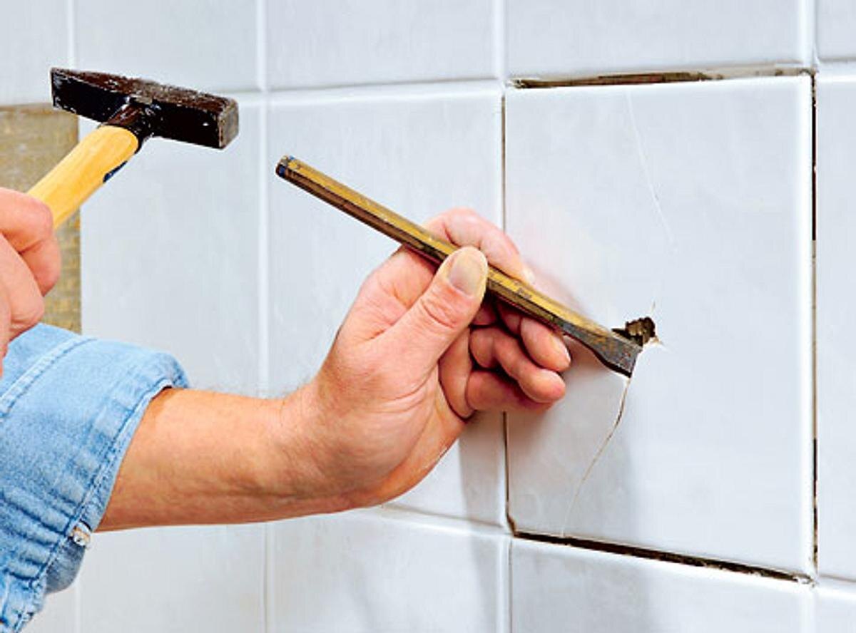 • Молоток и зубило или специализированный инструмент для демонтажа плитки