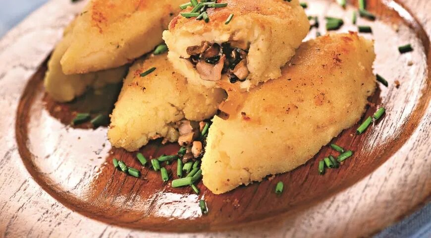 а) Вареный очищенный картофель разрезаем пополам (я бы взяла крупные картофелины), делаем посередине углубление, кладем в него грибной фарш, смешанный с жареным луком. Наливаем желе. Остужаем Подаем с хреном и горчицей.