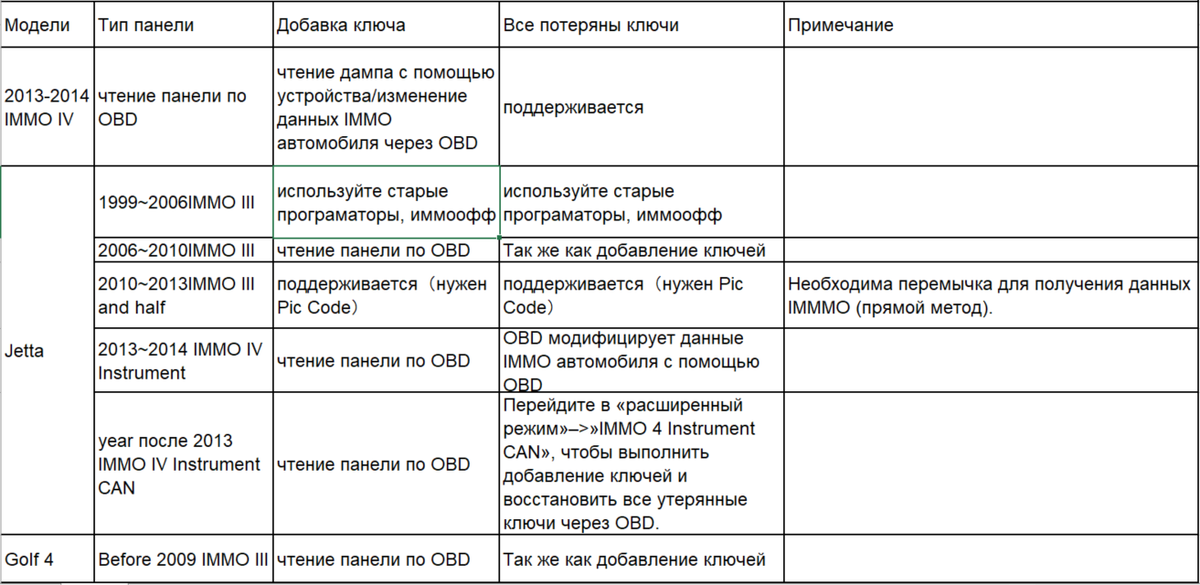 VAG Autel обзор функциональной поддержки части распространенных авто (IMMO III, IMMO IV,IMMO IV+MQB key, IMMO V)