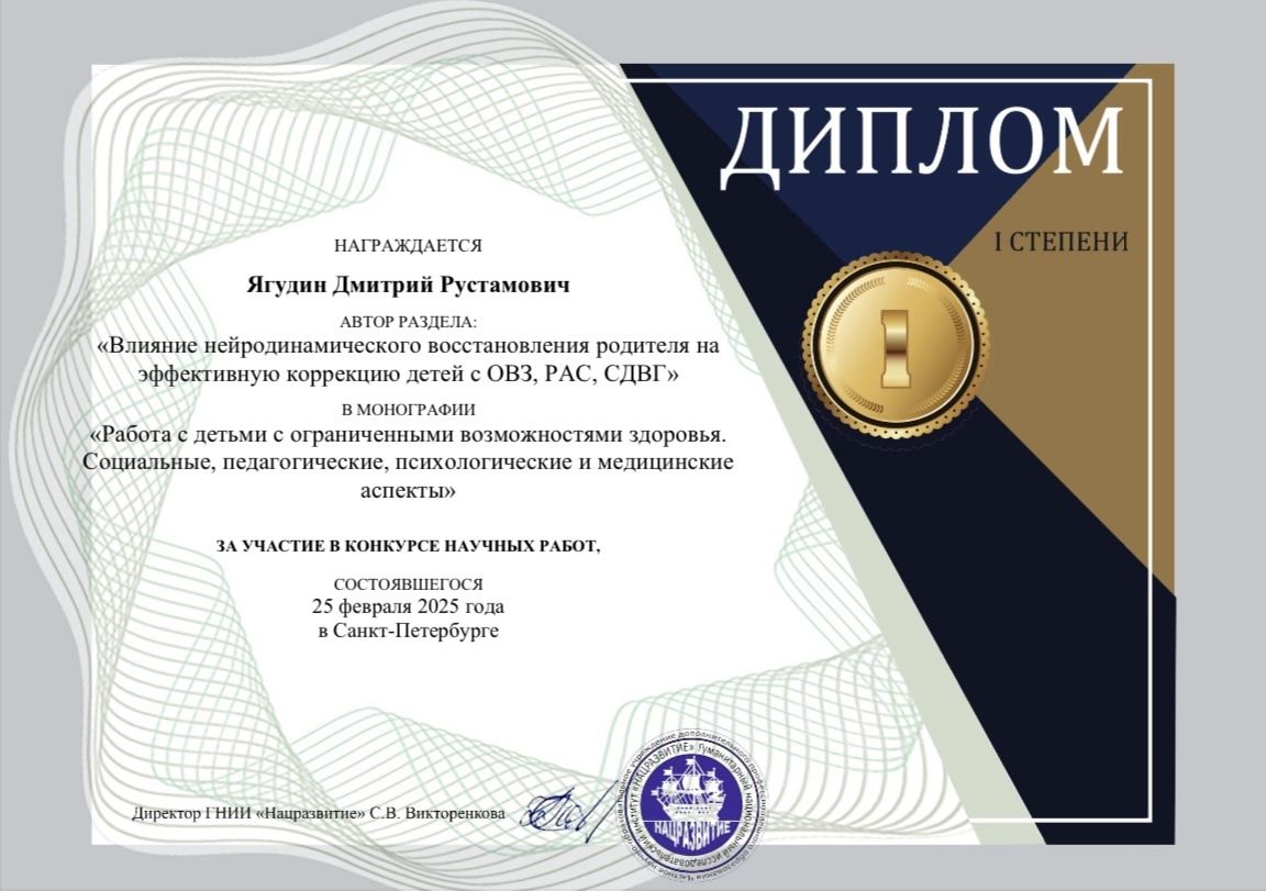 «Влияние нейродинамического восстановления родителя на эффективную коррекцию детей с ОВЗ, РАС, СДВГ»